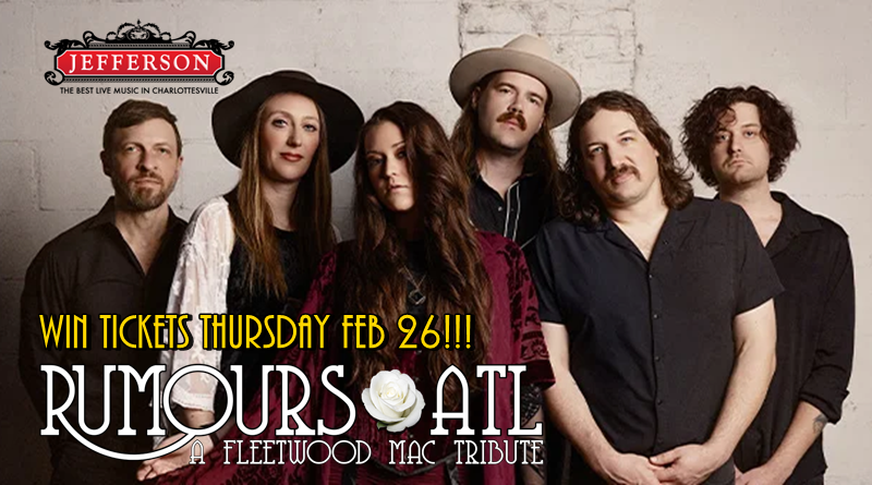 Rumours ATL, an excellent Fleetwood Mac tribute band will be at the Jefferson Theater on the downtown Mall this Thursday February 26. Yes, that is today!! We’ll be giving the tickets away at 2:35 PM (TODAY)!! Sorry for the short notice. That is our fault!! Just go to our website 979WREN.org to register on-line. We may also give some tickets away on air too!